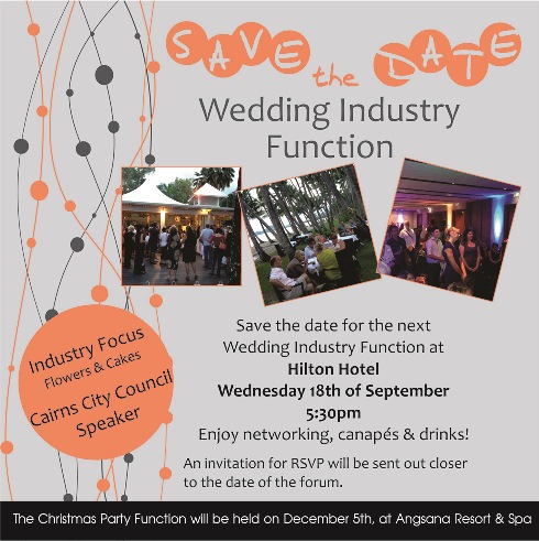 The Hilton Cairns will be hosting a ‘Wedding Networking Evening’ organised by a group of four local wedding industry partners. These businesses are: ‘Mod Films’, ‘Wed in Paradise’, ‘Angsana Beachfront Resort & Spa’ and ‘Register Your Wedding’.